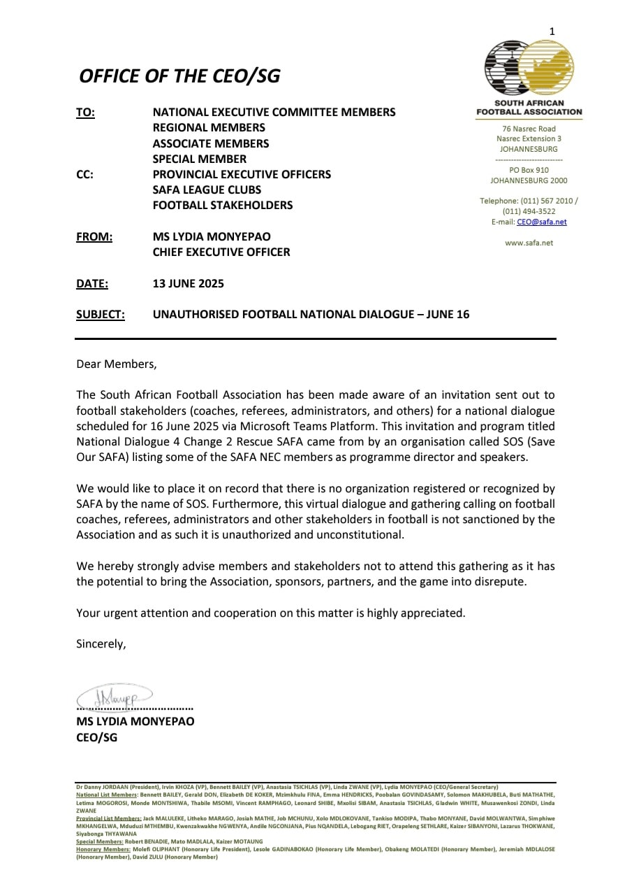 - 2025-06-13 - Circular From SAFA CEO Following NEC Members' Call for a National Dialogue